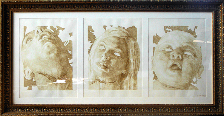 2004-2006: COAGULA “FEEDING” BLOOD ON PAPER 54″ X 36″ 2006 THE BEVERLY COLLECTION, SAN DIEGO, CA “GRAVITY” BLOOD ON PAPER 48″ X 36″ 2006 COLLECTION: GREGG ALLMAN, USA “RAY 5″ BLOOD ON PAPER 22″ X 30″ 2006 COLLECTION: SOCIETY FOR ART OF IMAGINATION (UNITED KINGDOM) “ANATOMICAL POLARITY” BLOOD ON PAPER 30″ X 15.5″ 2006 COLLECTION: MARIA FERRARA, NEW YORK CITY, USA “MAN, WOMAN, CHILD” BLOOD ON PAPER 80″ X 41″ 2004 “STINGS OF THE LASH” BLOOD ON PAPER 83″ X 55″ 2006 “THE GREAT WHORE” BLOOD ON PAPER 53″ X 41″ 2006 “RAY 7″ BLOOD ON PAPER 30″ X 22″ 2006 “RAY 2” BLOOD ON PAPER 30″ X 22″ 2006 COLLECTION: DARREN SHAN, IRELAND “THE SLEEP” BLOOD ON PAPER 83″ X 55″ 2006 COLLECTION: MARTIN STRICKER, SWITZERLAND “REFLECTION” IRON OXIDE 30″ X 22″ 2006 PRIVATE COLLECTION: OREGON, USA “TRANSITION” BLOOD ON PAPER 30″ X 20″ 2006 COLLECTION: ADAM WILBURN, MI, USA “DUALITY” BLOOD ON PAPER 66″ X 55″ 2006 “MULTIPLY THY SORROW” BLOOD ON PAPER 42″ X 36″ 2006 COLLECTION: JONATHAN HESLIN, IRELAND “LAMENT” BLOOD ON PAPER 22″ X 30″ 2006 COLLECTION: ZOE CORLEONE / MUSEUM OF PORN IN ART, SWITZERLAND “EXILE” BLOOD ON PAPER 48″ X 24″ 2006 “SYNCHRONICITY 3” BLOOD ON PAPER 30″ X 40″ 2004 PRIVATE COLLECTION: SWITZERLAND